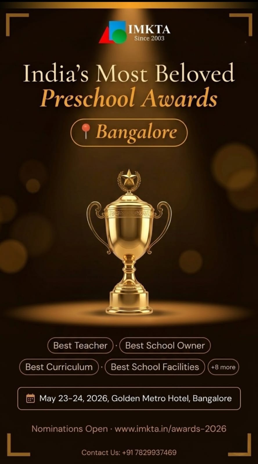 International Montessori and kindergarten training academy (IMKTA) is the premier preschool teacher training institute offering Diploma Montessori and Kindergarten method of education for aspiring parents, teachers and to those interested in early child care and education, IMKTA offers courses in the regular, distant learning course with contact programs and practical workshops. IMKTA also provides consultancy services to preschools which need improvements and to strive towards greater excellence. IMKTA also supplies Montessori materials, and Montessori books and albums. The placements cell of the IMKTA helps the Montessorians to find jobs both in India and Abroad.